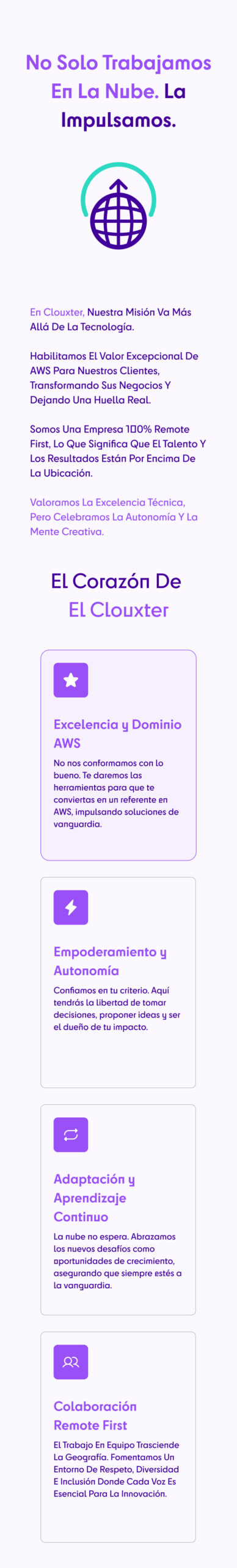 Como Cloud Consultant en Clouxter, no solo serás un asesor técnico, serás un arquitecto de la transformación digital. Tu misión es liderar estratégicamente el diseño, implementación y optimización de arquitecturas AWS para nuestros clientes.