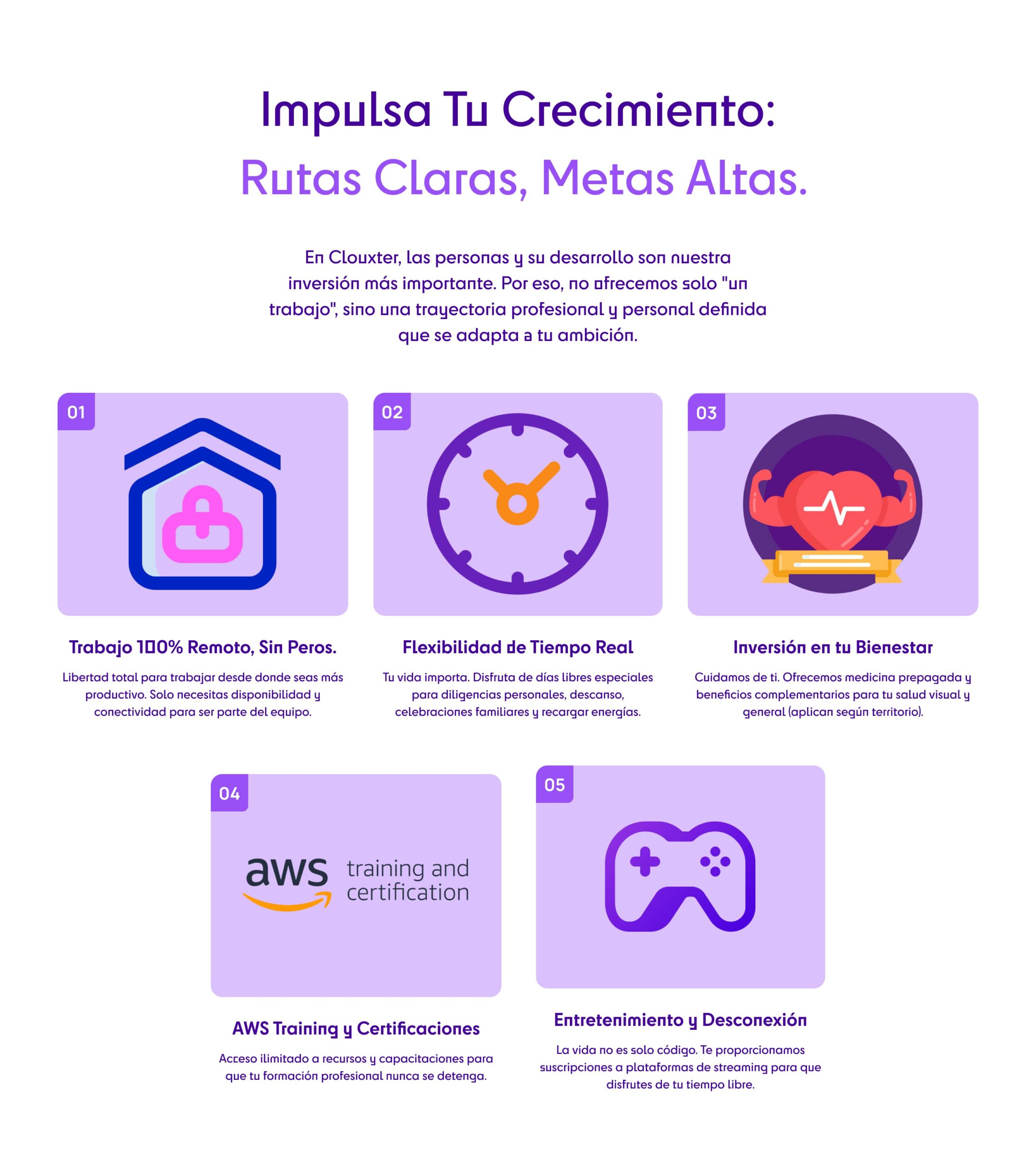 Como Account Manager Mex en Clouxter, serás el estratega comercial que impulsa el crecimiento sostenible de las cuentas clave en el ecosistema AWS.