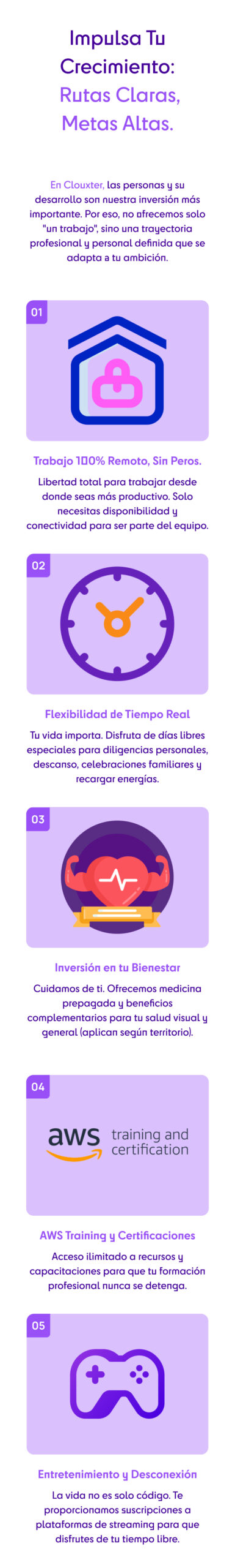 Como Analista de Ciberseguridad en AWS en Clouxter, serás el guardián de la seguridad digital de nuestros clientes. Tu misión será proteger, monitorear y fortalecer los entornos en la nube bajo los más altos estándares de seguridad.